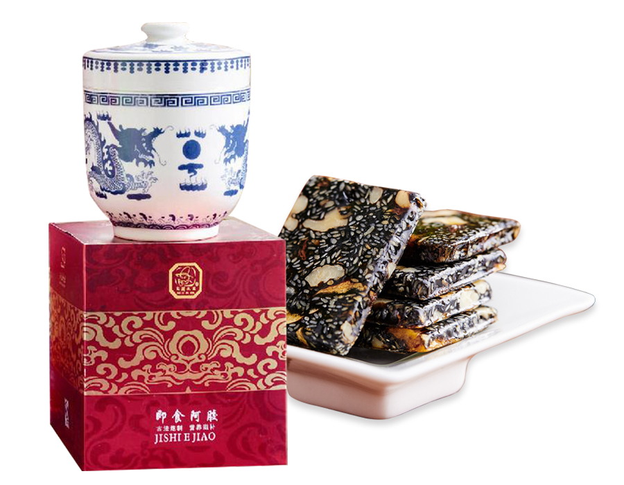 即食阿膠是根據(jù)唐代宮廷秘方“貴妃美容膏”組方所得,1920 年由東阿潤(rùn)惠堂第六代掌柜任國(guó)興研制發(fā)明,形成現(xiàn)代固體形態(tài)、 方便攜帶和食用的“即食阿膠”(阿膠糕)。任國(guó)興隨之首創(chuàng)凝膠 成糕法,將黑芝麻、核桃仁、桂圓肉、紹酒、冰糖等… …